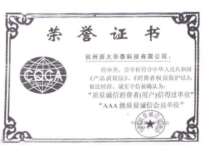 AAA級質量證書